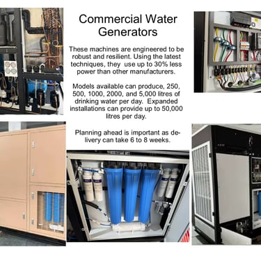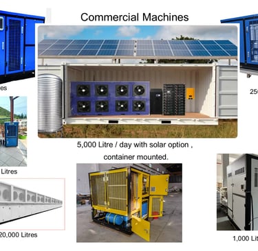 These machines are already established in isolated villages, micro-breweries, perfumeries, small businesses, shopping malls, hospitals, hotels, apartment blocks, factories, ice -makers, and municipal buildings all over the world.