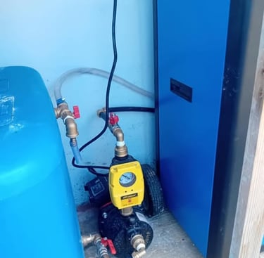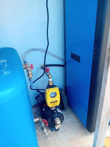12 March 25. This is what happened TODAY while we were having lunch today. Thank goodness we were at home. After only 10 months of Zakynthos piped water, (that's when it was last changed) this fitting gave up and flooded the bathroom. WE CAN'T WAIT to finish installing our 80 Litre machine and go TOTALLY OFF GRID. Problems like this will NEVER HAPPEN TO US AGAIN!